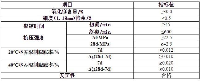 三、技術(shù)參數(shù)(參考《Q/BTD005-2023鎂質(zhì)高性能混凝土抗裂膨脹劑》)